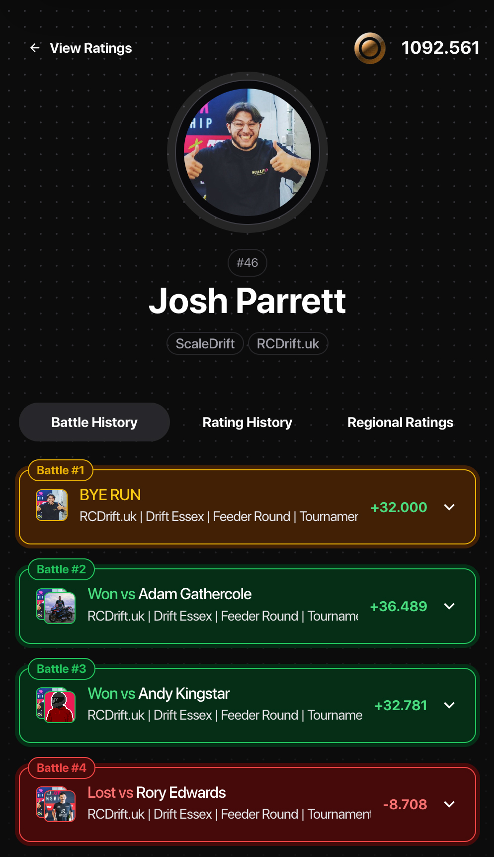 Track your rank with real-time driver ratings. From grassroots events to pro-level tournaments.